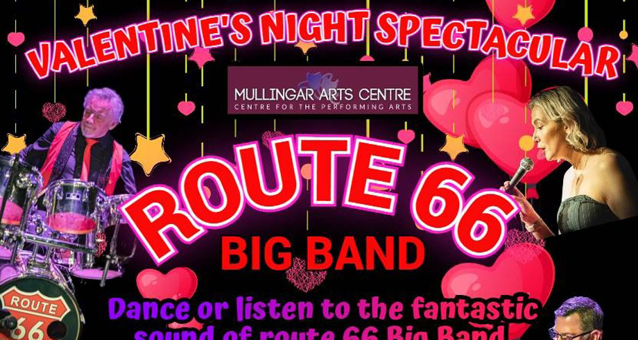 Route 66 Big Band bring their Live in Concert show to Mullingar for Valentines night 14th February where you will have the unique opportunity to dance to a fabulous 16 piece band or just sit back and enjoy the great music that Route 66 bring to all their shows. Better still why not treat your partner to a Christmas present of tickets for a great night out to celebrate Valentine Day.
